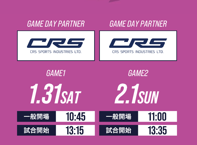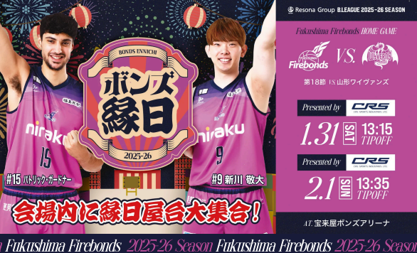 CRSスポーツ工業株式会社は、1月31日(土)・2月1日(日)の2日間に開催された福島ファイヤーボンズの試合において、プレゼンター企業として応炎させていただきました。